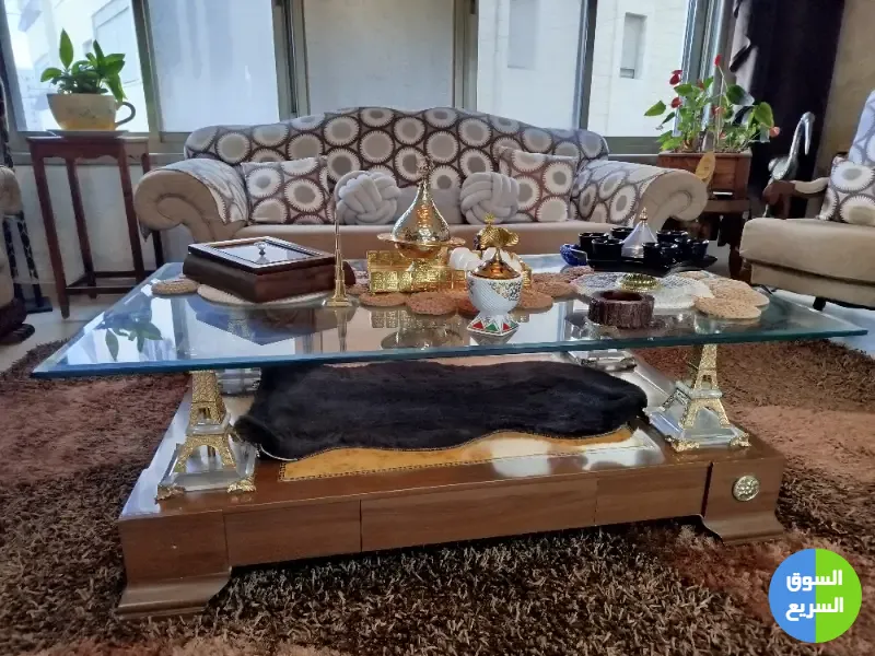 طقم جديد تقريبا مع طاولة وسط فخمه مع مرجيحه